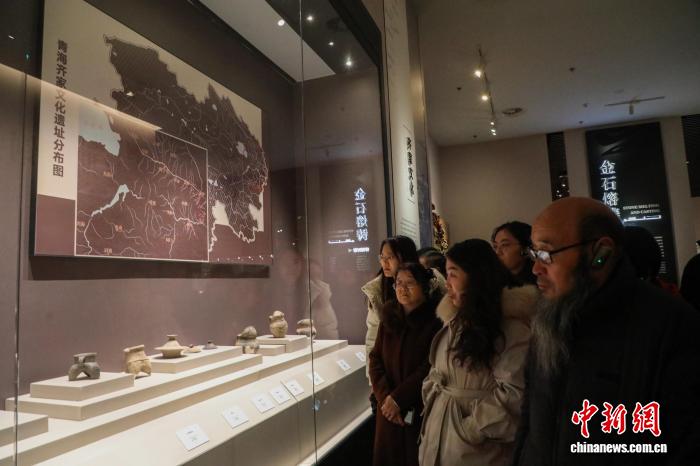 图为预会职员正在海东市河湟文明专物馆内乱观光出土于年夜通县上孙家赛遗迹的陶器。中新社记者 马铭行 摄