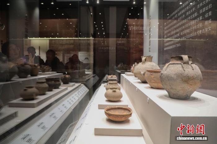 图为预会职员正在海东市河湟文明专物馆内乱观光马家窑文明半山类别葫芦形网纹单耳彩陶壶。中新社记者 马铭行 摄